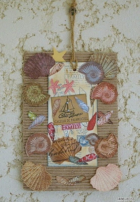 I used a gift sticker for the centre piece and I didn't spend hours cutting out shells for nothing either! I used the word Family and some shipping rope etc. Well I did try my best.